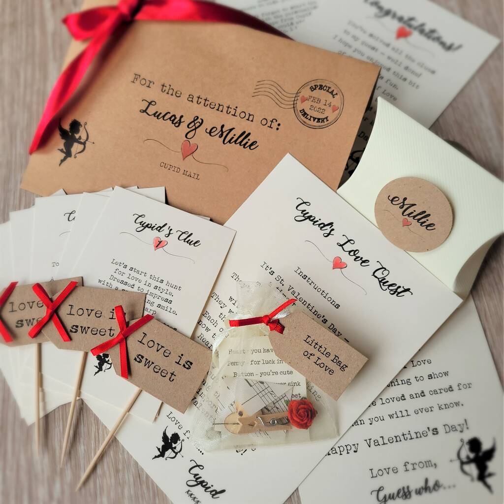 ♥ 6 x ‘Cupid’s Clue Cards’ – each printed with a different rhyming clue to lead them to the next.