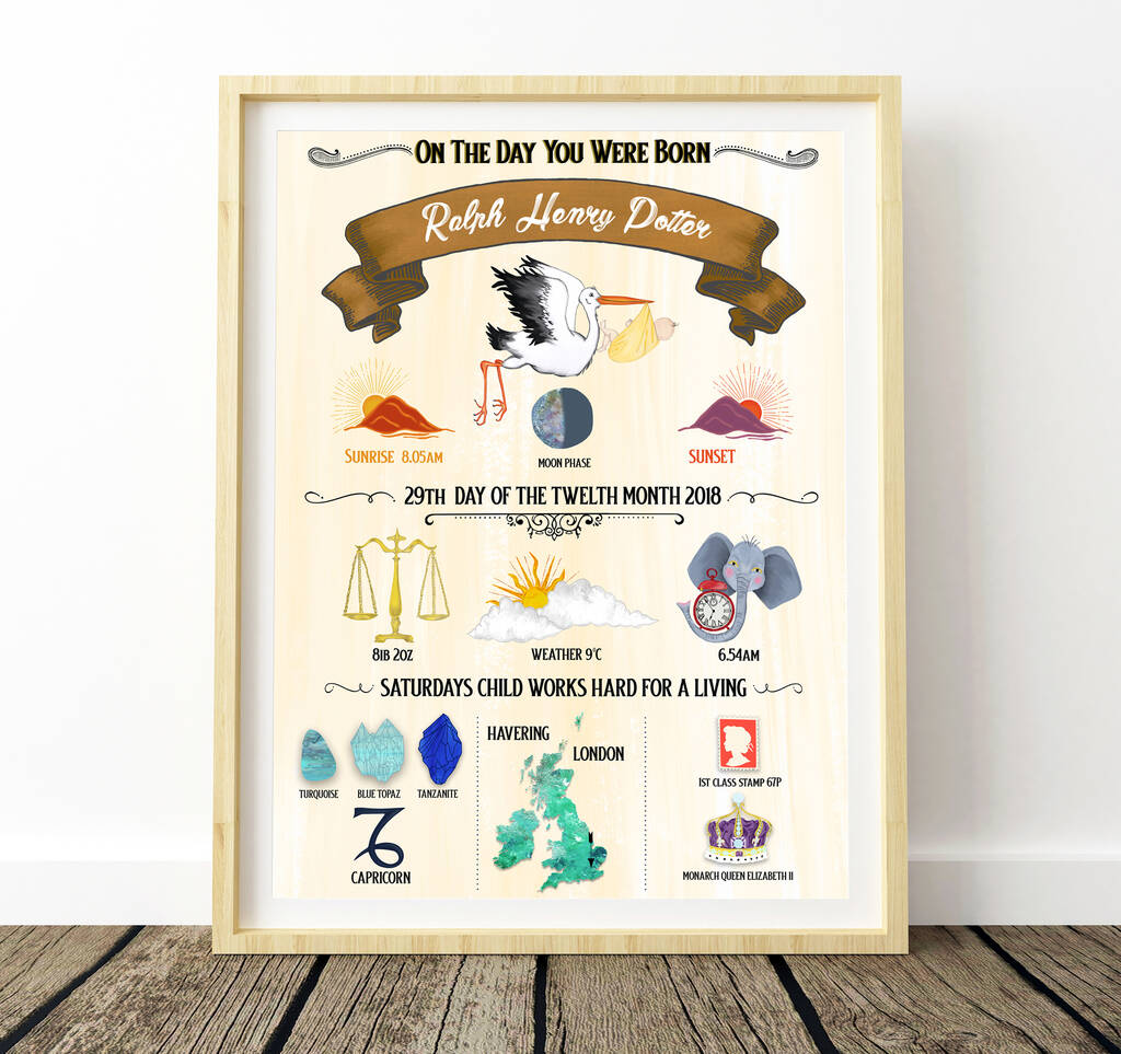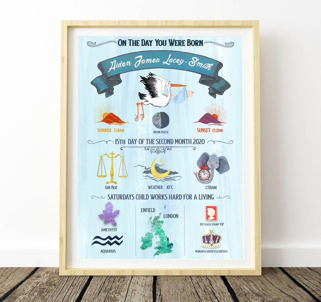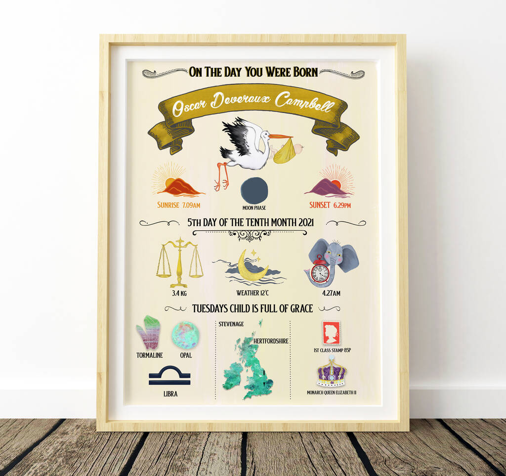 Personalised Newborn Birth Details Print – 10 Colour Options