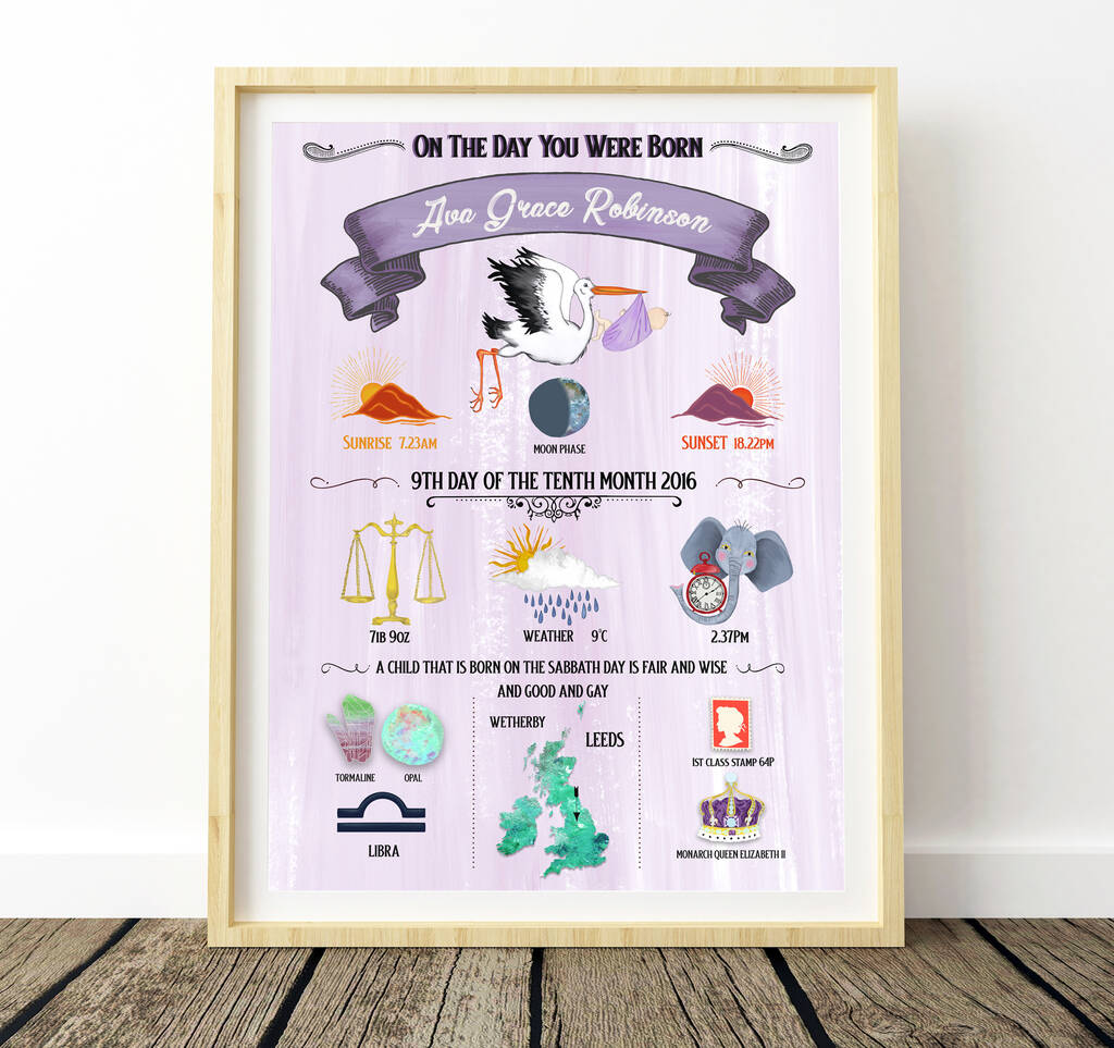 • Personalised Newborn Birth Details Print – 10 Colour Options, thumbnail 10 of 11