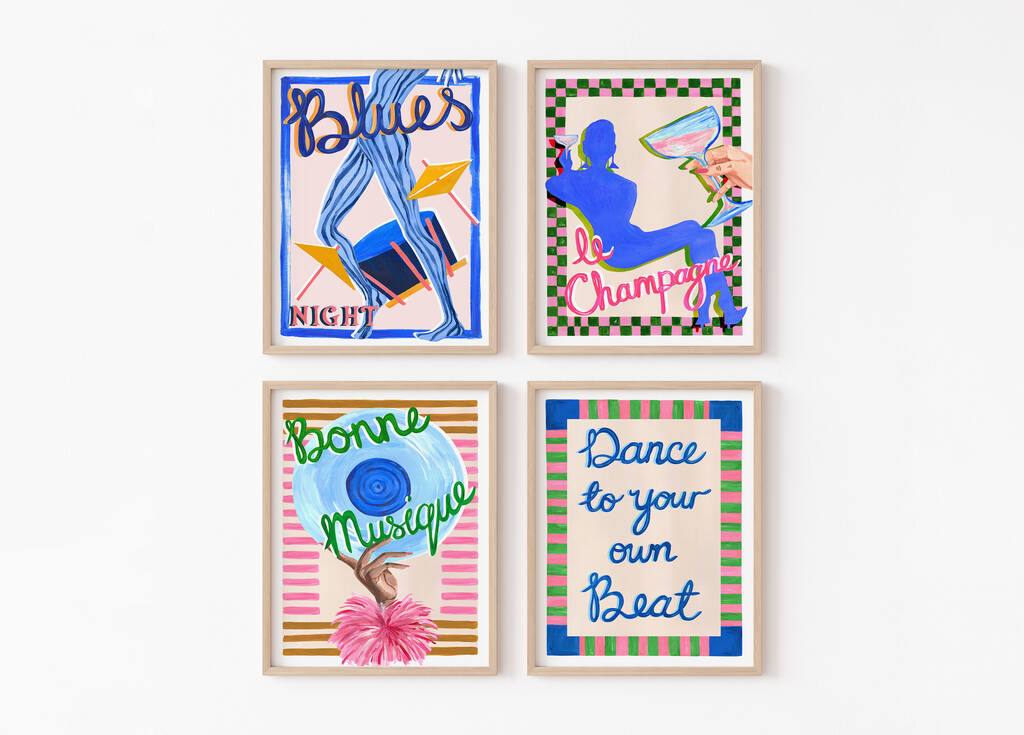 Set Of Four Music Wall Art Prints – Retro Jazz And Cocktail Inspired Art