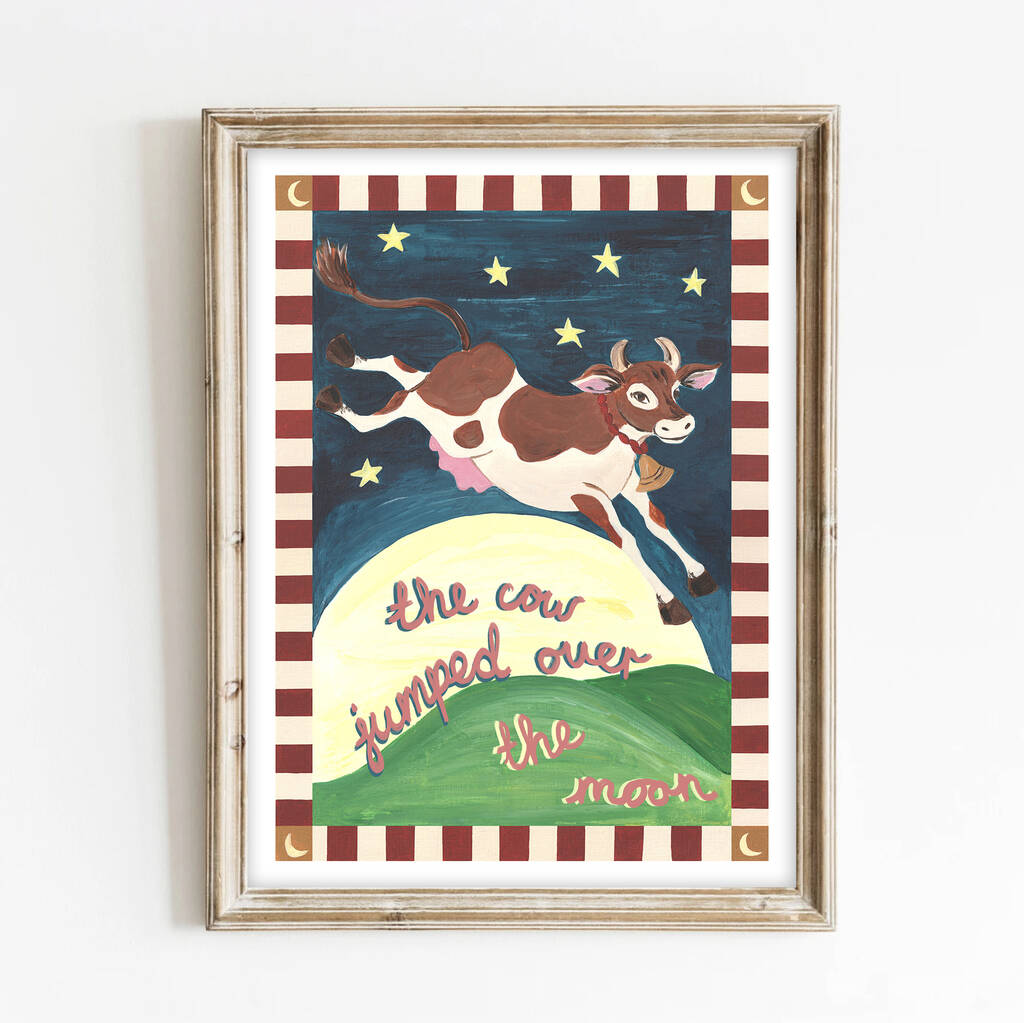 The Cow Jumped Over The Moon Vintage Nursery Print