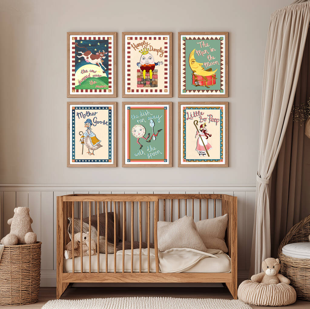 Bring classic childhood tales to life with our hand-painted Vintage Nursery Rhyme Print Set — a charming collection of illustrations inspired by the rhymes we all grew up with.