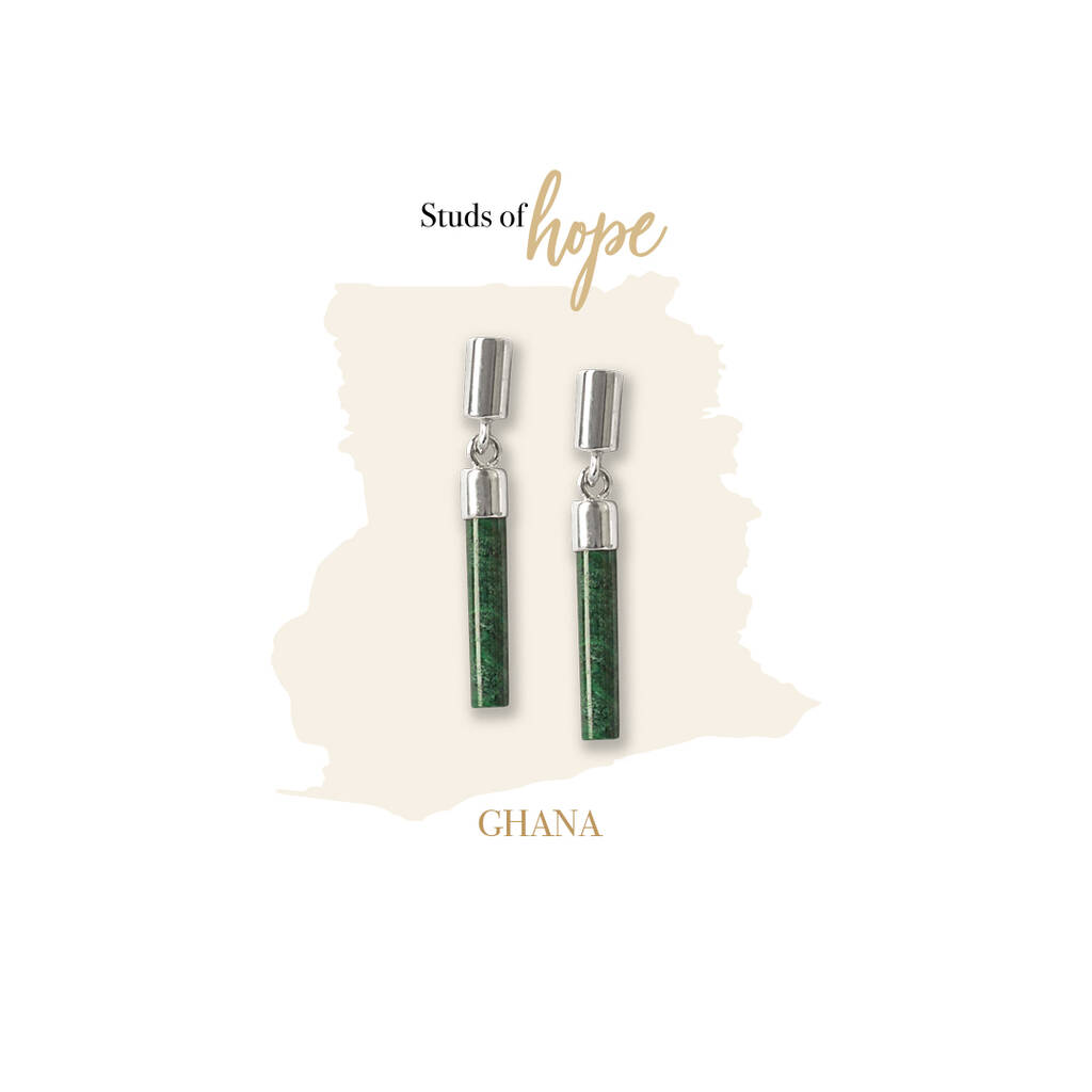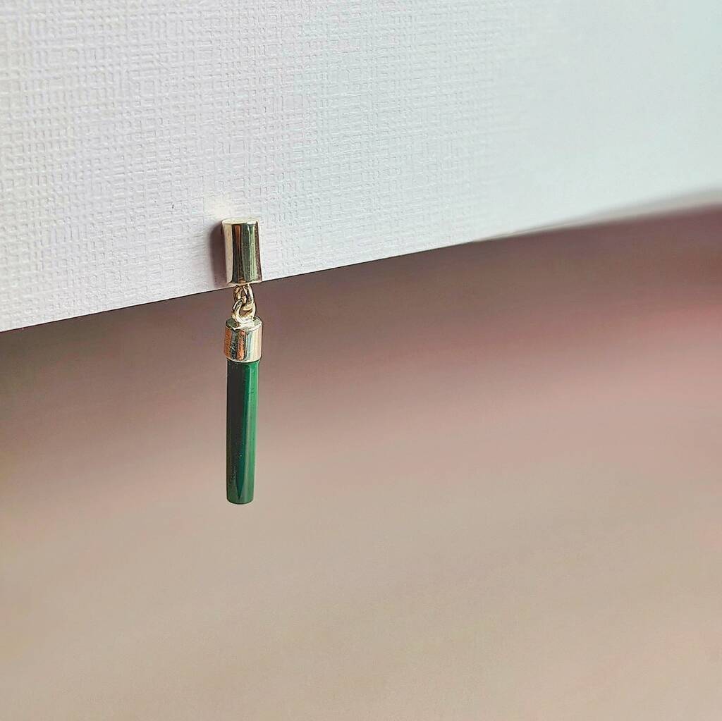 Ethical Minimal Malachite Drop Bar Moving Stud Earrings