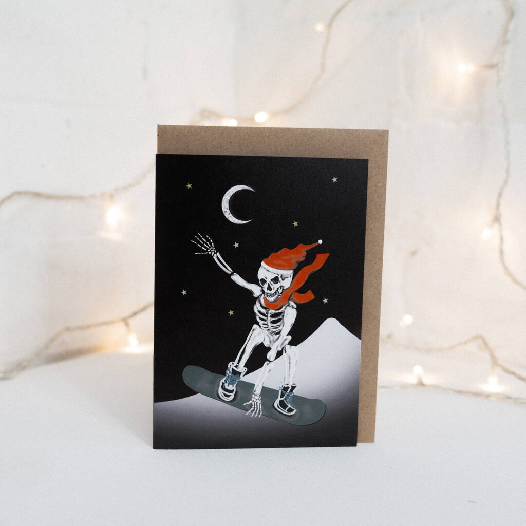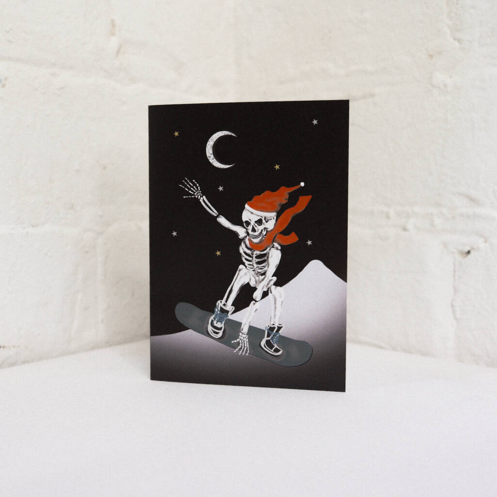 Snowboarding Skeleton Santa Gothic Christmas Card
