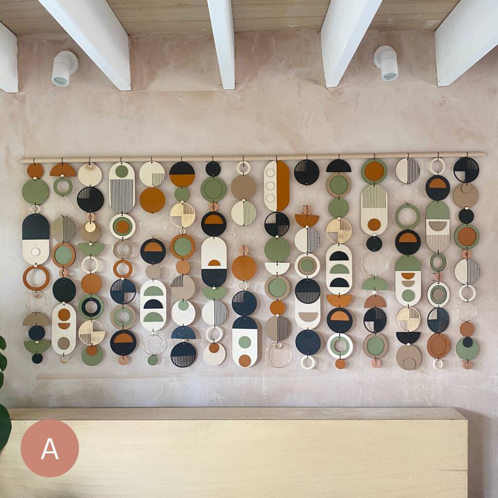 We have four large statement pieces to choose from, so you can spruce up those boring old empty walls with a splash of Burnt Orange, Earthy Beige, Black, Olive Green, and Gold. Constructed with sustainable plywood and crafted in beautiful Milton Keynes, this snazzy selection of epic sized wall art will give any room a timeless touch. Paint, plywood, metal, ceramics, waxed cord, and wooden beads make up these show stopping pieces, so go ahead and take your interiors to the next level!