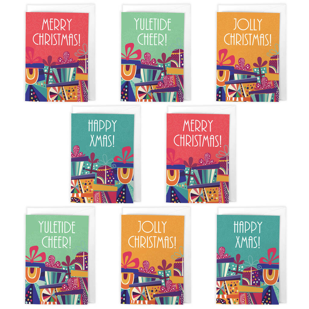 Christmas Cards Set Of Eight A6 Size Festive Greetings Colourful Presents