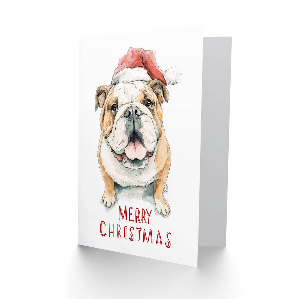 Cute English Bulldog In Santa Hat Watercolour Christmas Card