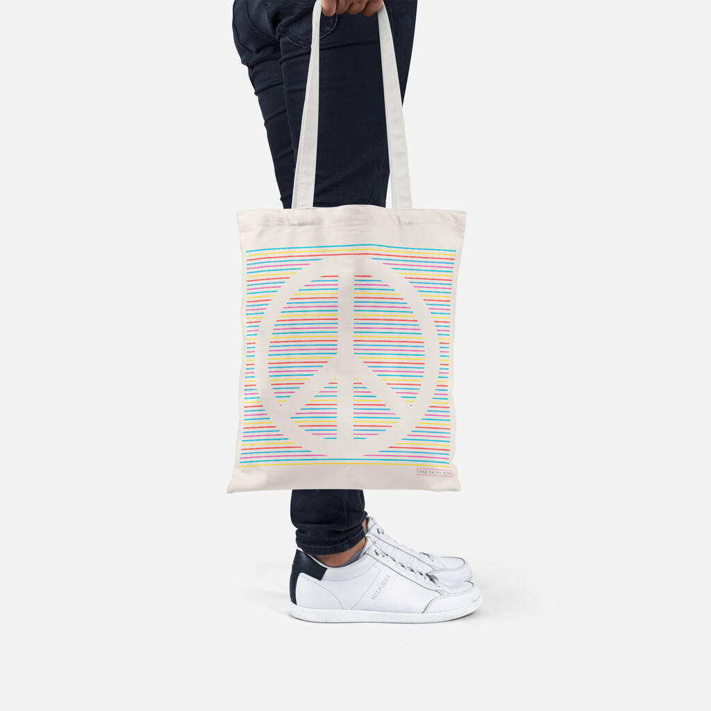 Peace Sign Cotton Tote Bag Reusable Eco Friendly