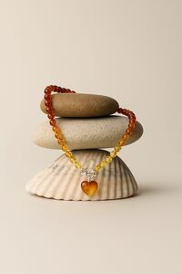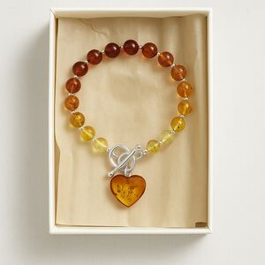 Sterling Silver Amber T Bar Bracelet With Amber Heart