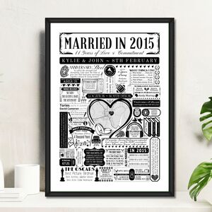 Married In 2017 Map Print, Personalised 9th Pottery Anniversary Gift