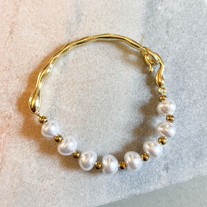 Stainless Steel Pearl Star Compass Pendant Necklace In Gold