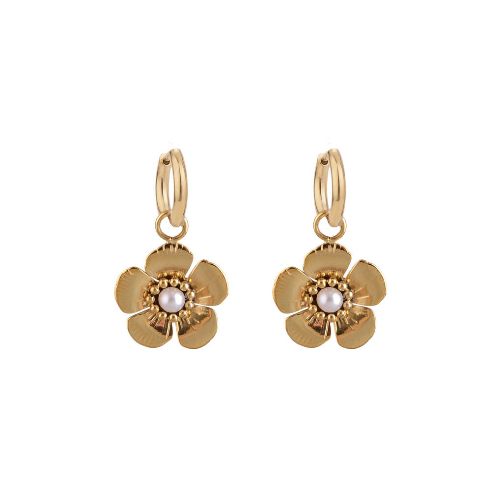 Huggie Hoop Flower Drop Earring In Gold/Silver