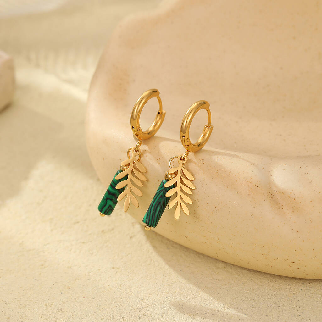 Natural Stone And Leaf Drop Earring In Green And Gold