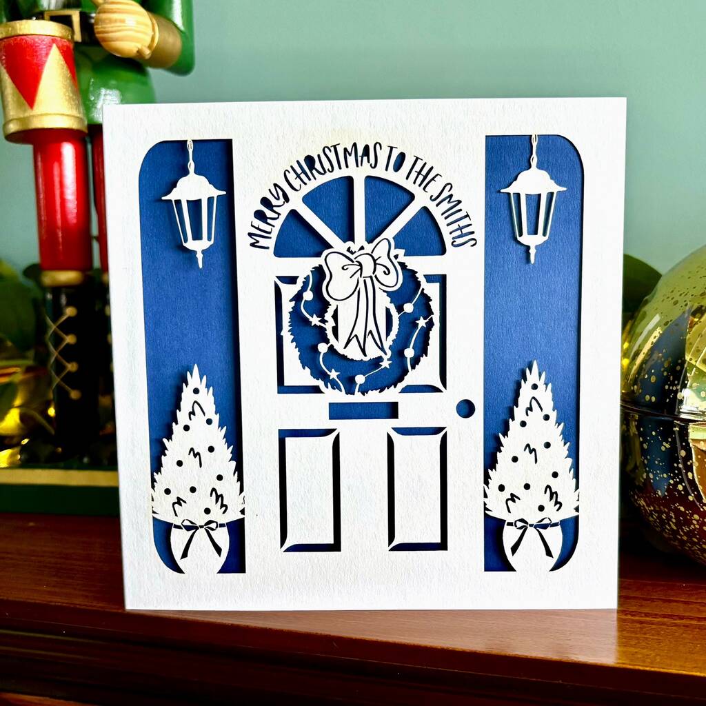 Personalised Front Door Papercut Christmas Card