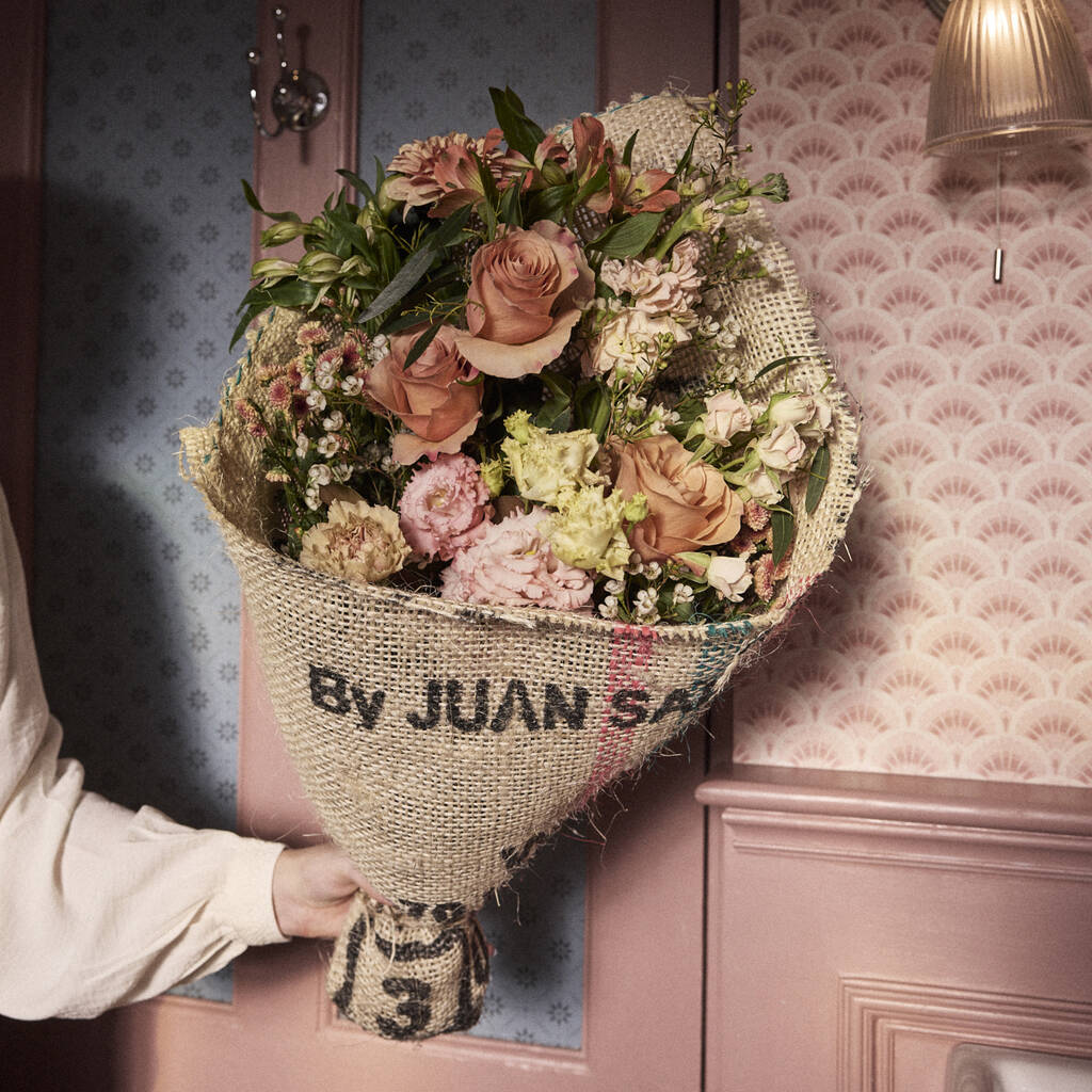 Seasonal Fresh Flowers In Coffee Sack Wrap