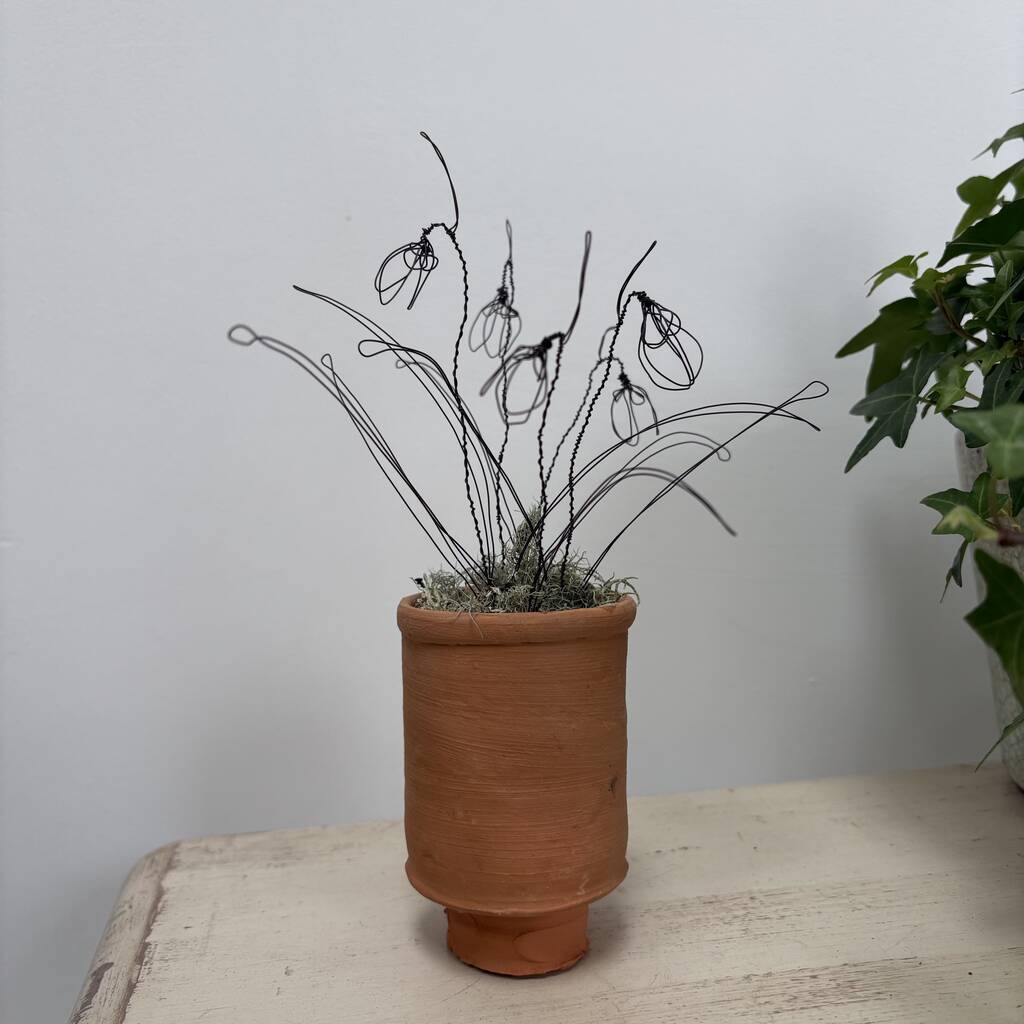 Wire Snowdrops In Handmade Terracotta Pot