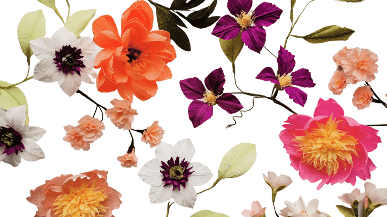 Our paper flower kits contain all the materials, templates and instructions you need to handcraft your very own paper flowers and foliage. All you need to bring to the table is your good self, a pair of sharp scissors and a glue gun