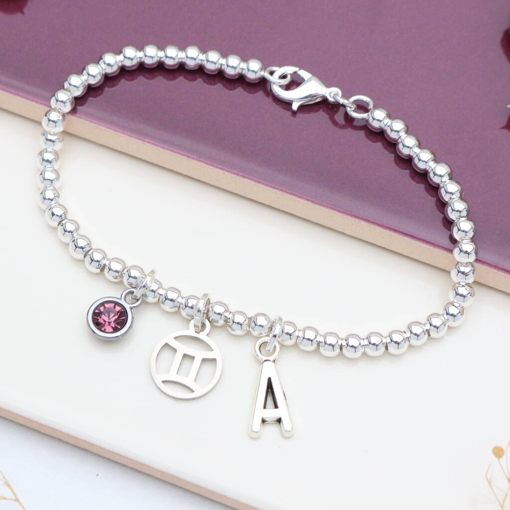 Zodiac Star Sign Personalised Silver Bead Bracelet