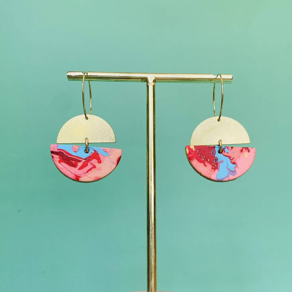 Handmade Leather Small Halfmoon With Pendent Earrings Marbled