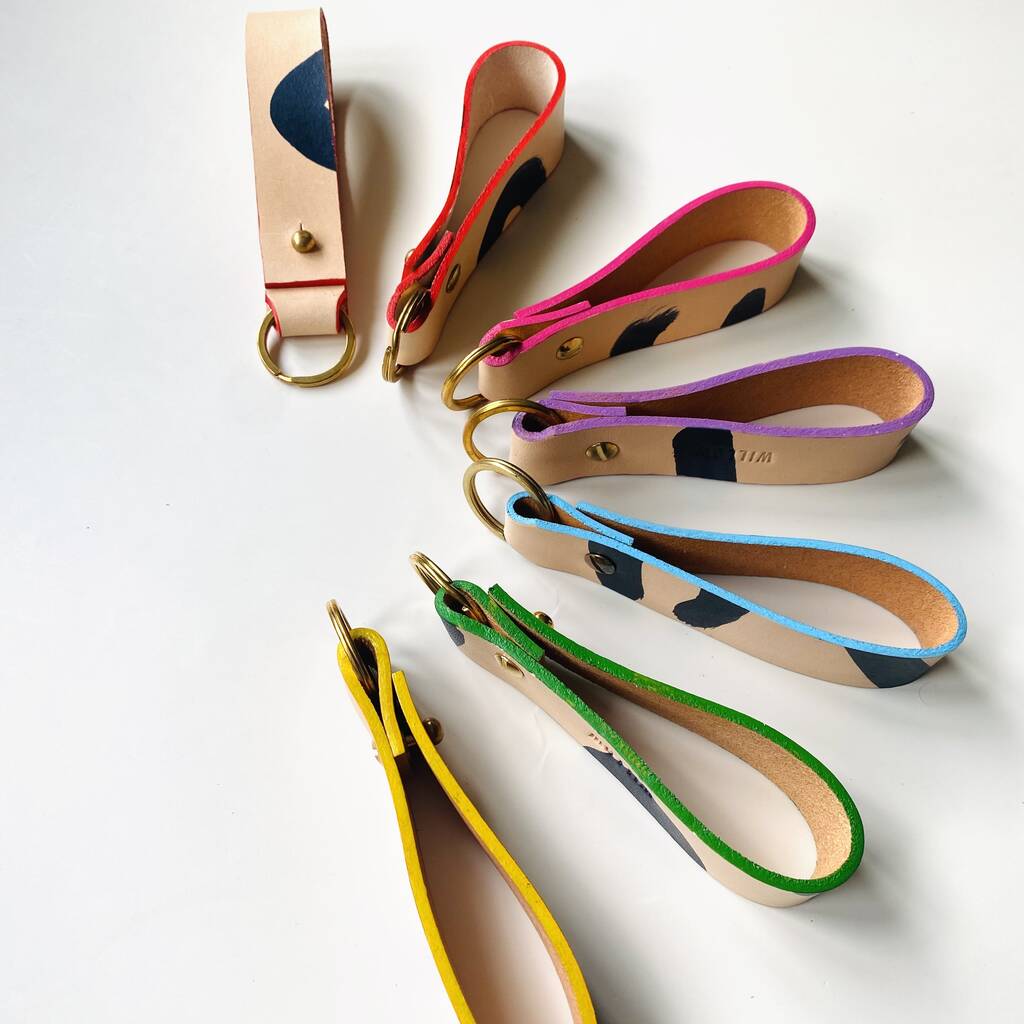 This handmade key loop is a great gift idea for a new home owner or for stocking filler. Designed to be worn on a belt, bag strap or just as a fob and because of the fastening you can detach the key loop anytime. All key loops are hand cut, with great attention to detail.