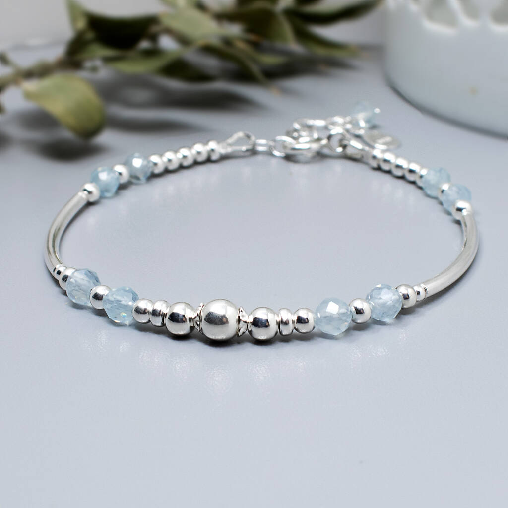 Aquamarine Gemstone And Sterling Silver Bracelet, March Birthstone Jewellery