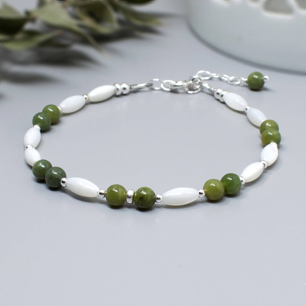 Jade Bracelet With Mother Of Pearl, Sterling Silver Or 14ct Gold Fill