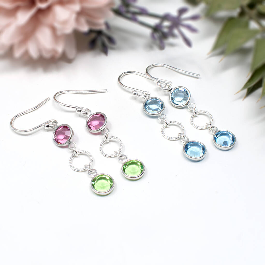 Long Birthstone Earrings, Sterling Silver