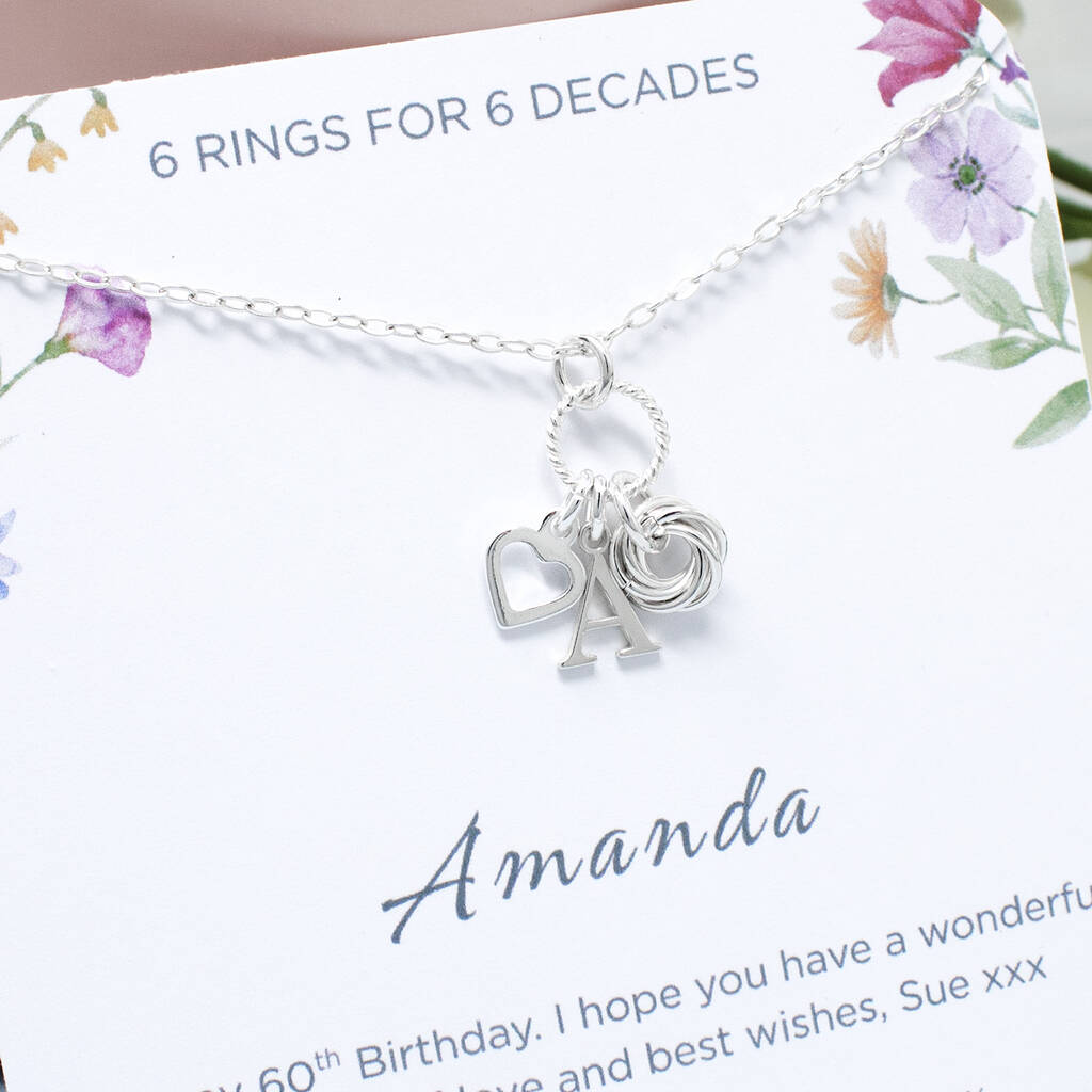 Personalised 60th Birthday Rings Necklace 925 Sterling Silver