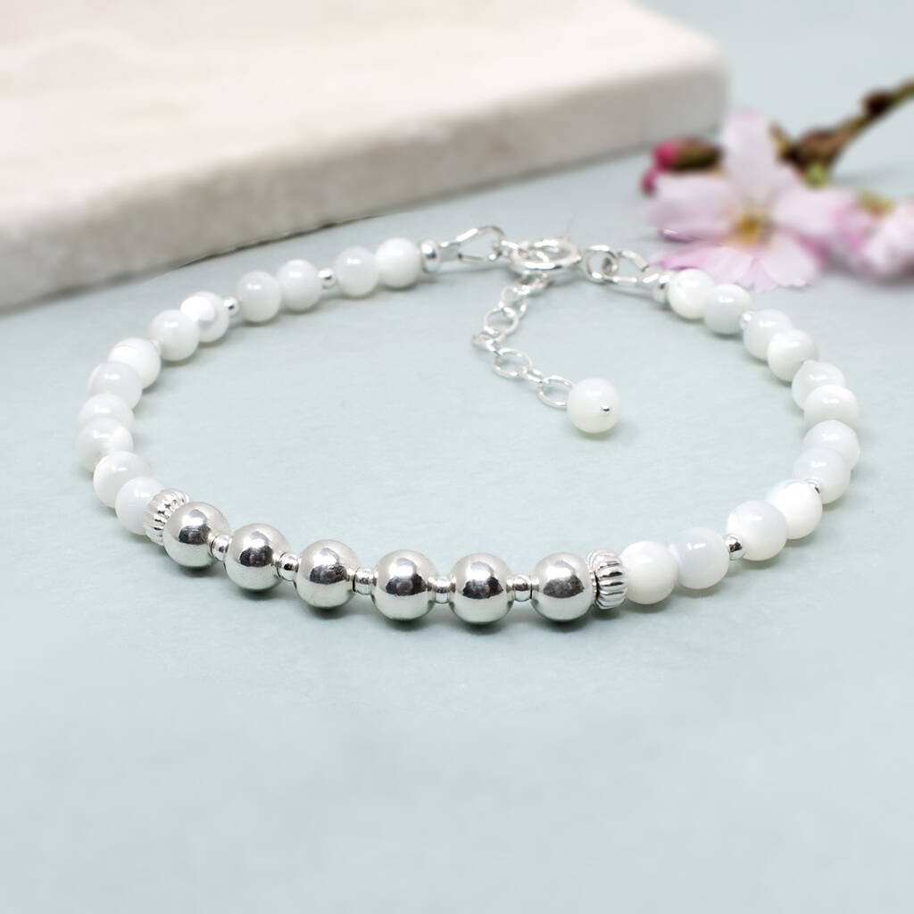 Personalised Sterling Silver 60th Birthday Bracelet, Mother Of Pearl Gemstone