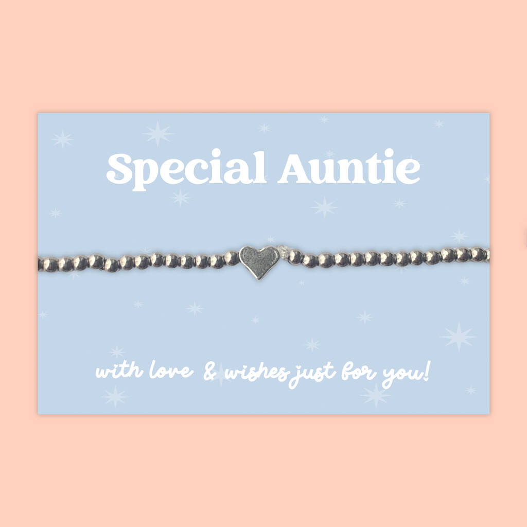 Special Auntie Heart Charm Stretch Bracelet, Stainless Steel