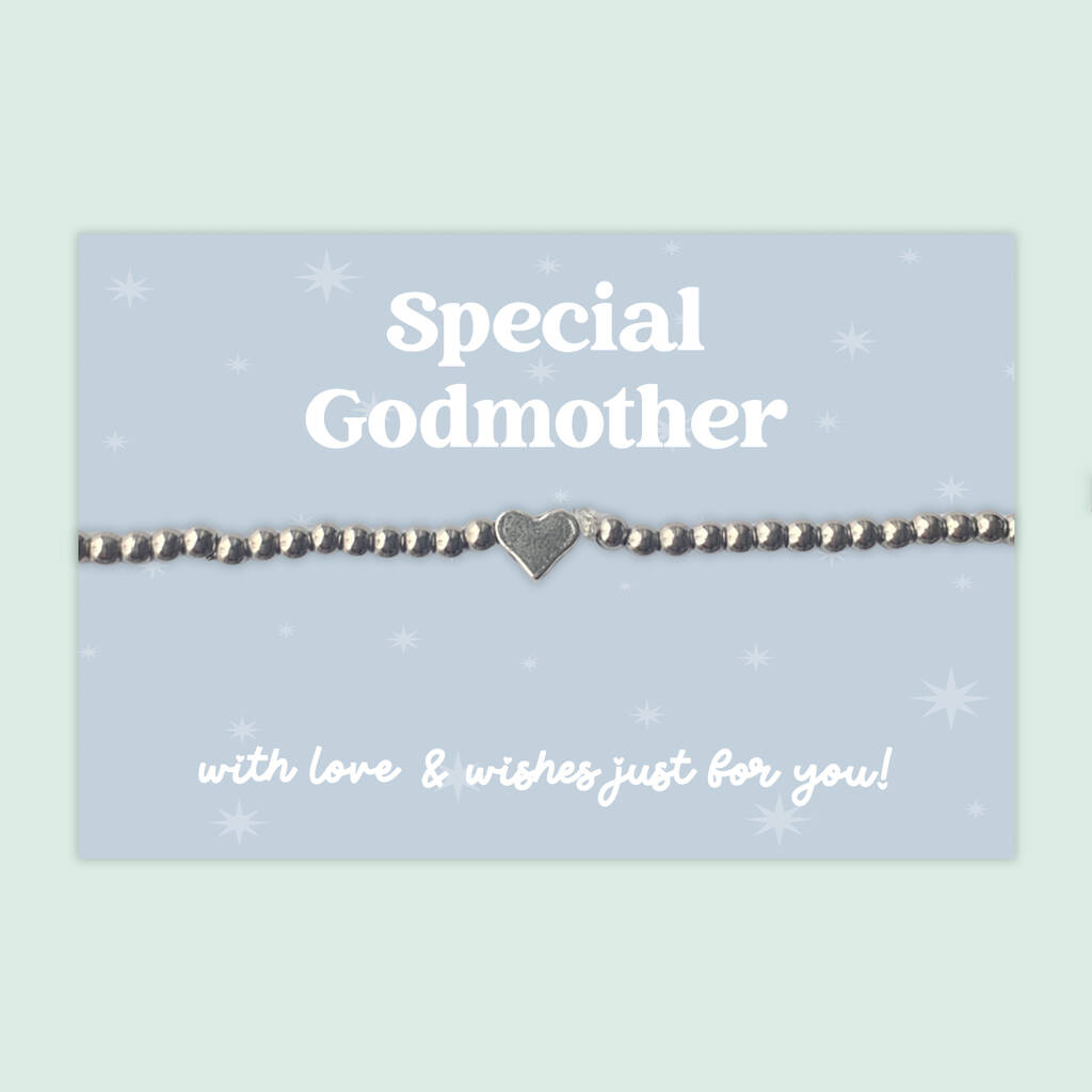 Special Godmother Heart Beaded Stretch Bracelet