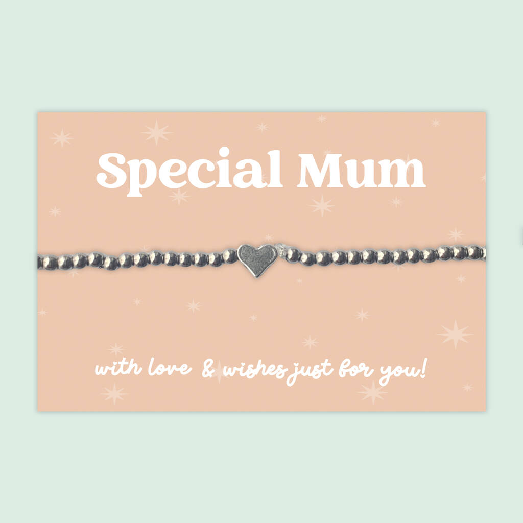 Special Mum Heart Charm Stretch Bracelet, Stainless Steel