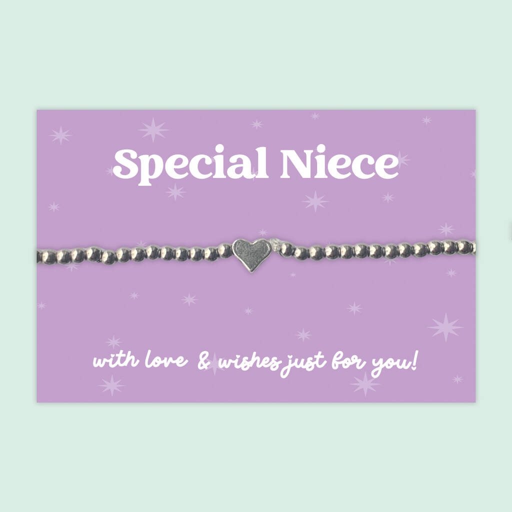 Special Niece Heart Charm Stretch Bracelet, Stainless Steel