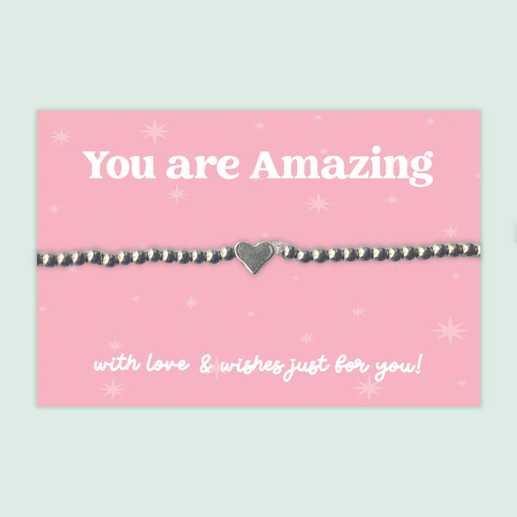 You Are Amazing, Heart Charm Stretch Bracelet, Stainless Steel