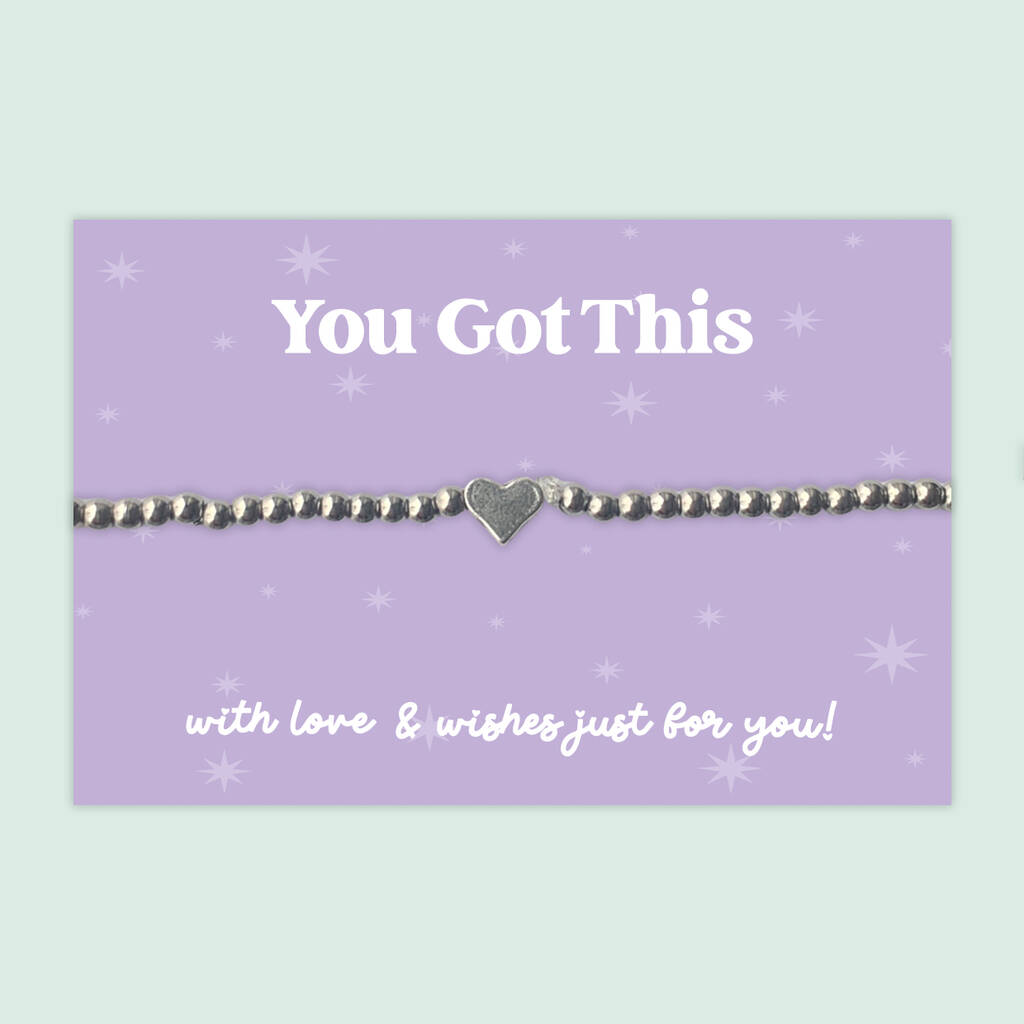 You Got This, Heart Charm Stretch Bracelet, Stainless Steel