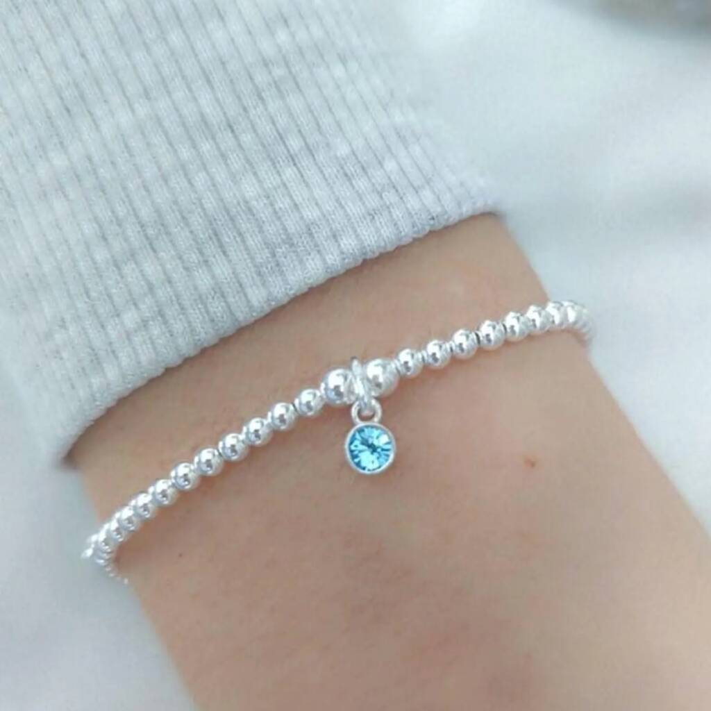 Sterling Silver March Birthstone Beaded Stretch Bracelet