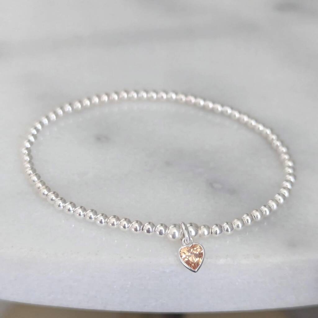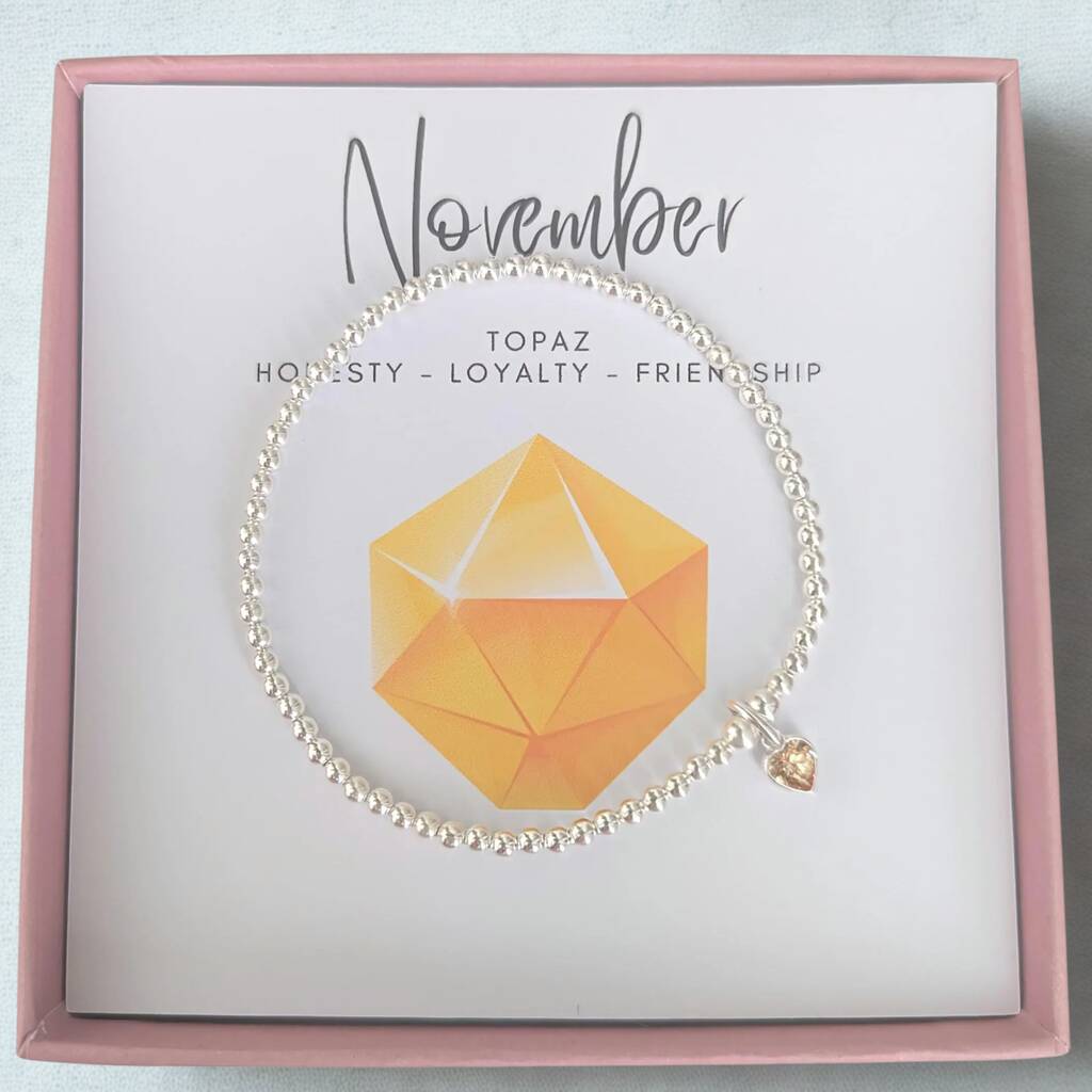 Sterling Silver November Topaz Heart Birthstone Bracelet