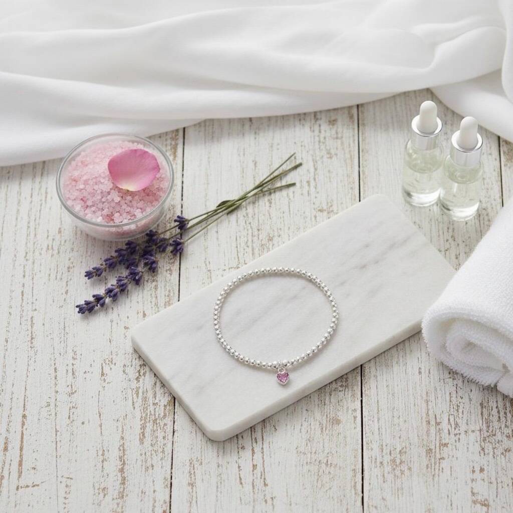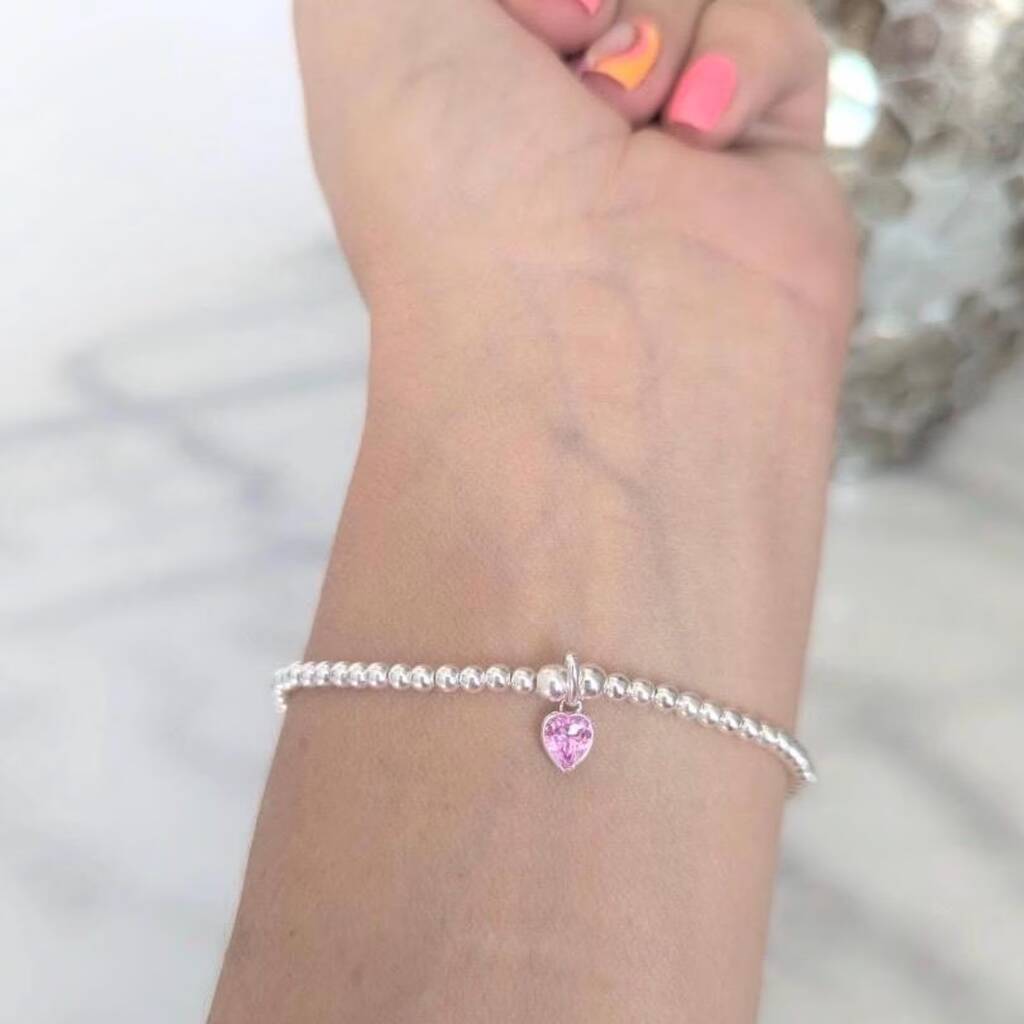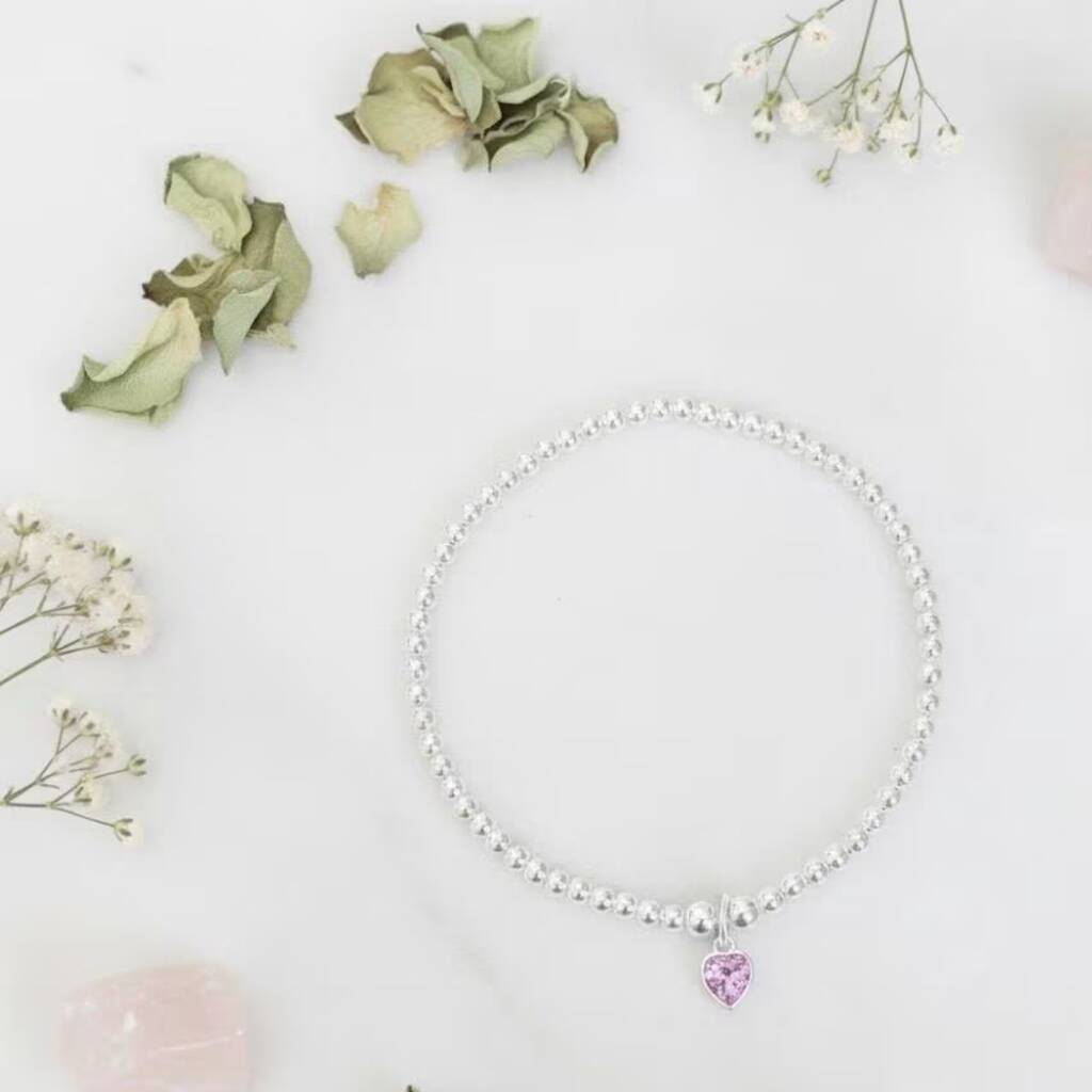 Sterling Silver October Tourmaline Heart Birthstone Bracelet