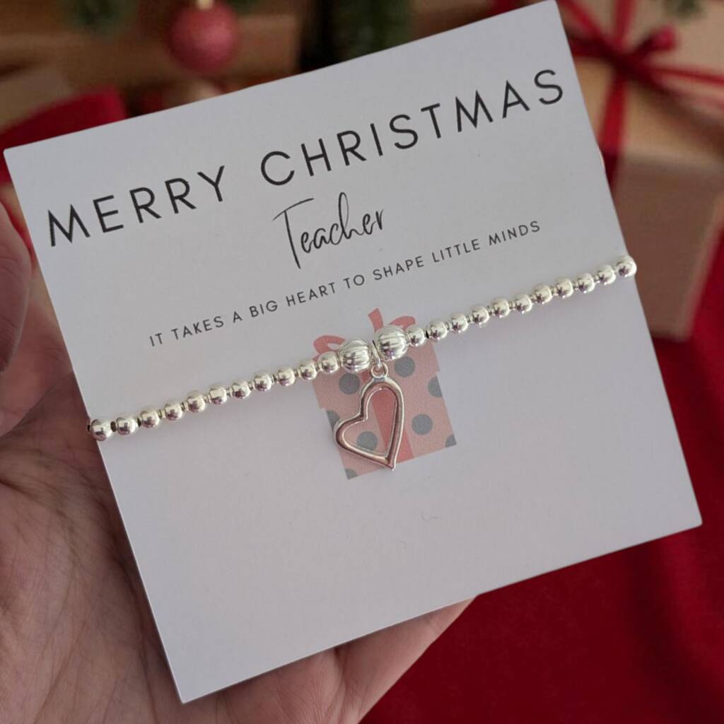 Merry Christmas Or Thank You Teacher, Teaching Assistant, Nursery Teacher Or Childminder Silver Plated Bracelet