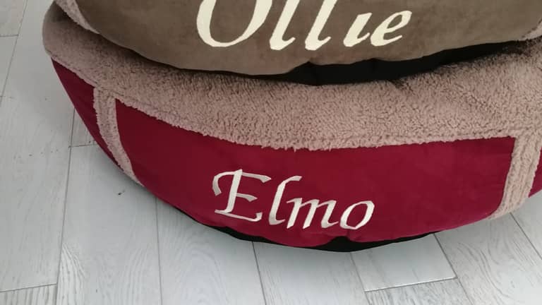 We also offer our beautiful personalisation service where we will design your dog's name in embroidery with a colour and font style carefully chosen to suit your Wolfybed.