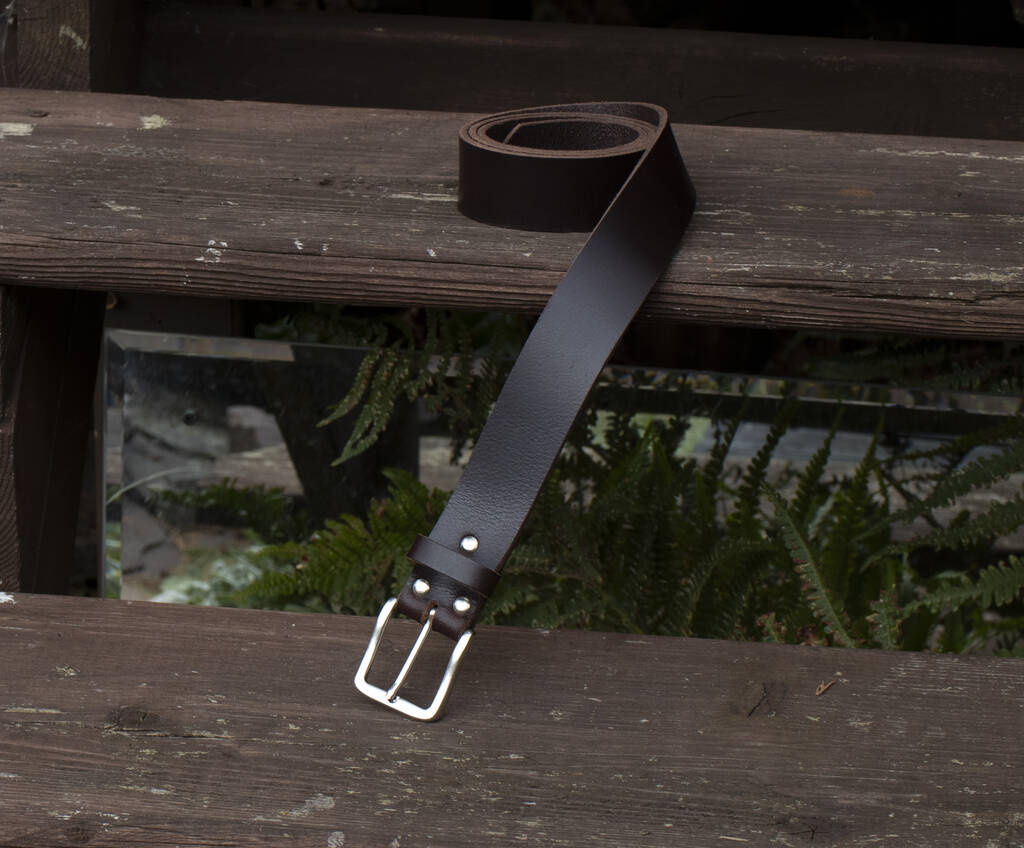 Handmade men’s dark brown leather belt crafted in Britain from premium English hide. Durable & stylish – the perfect gift for him.