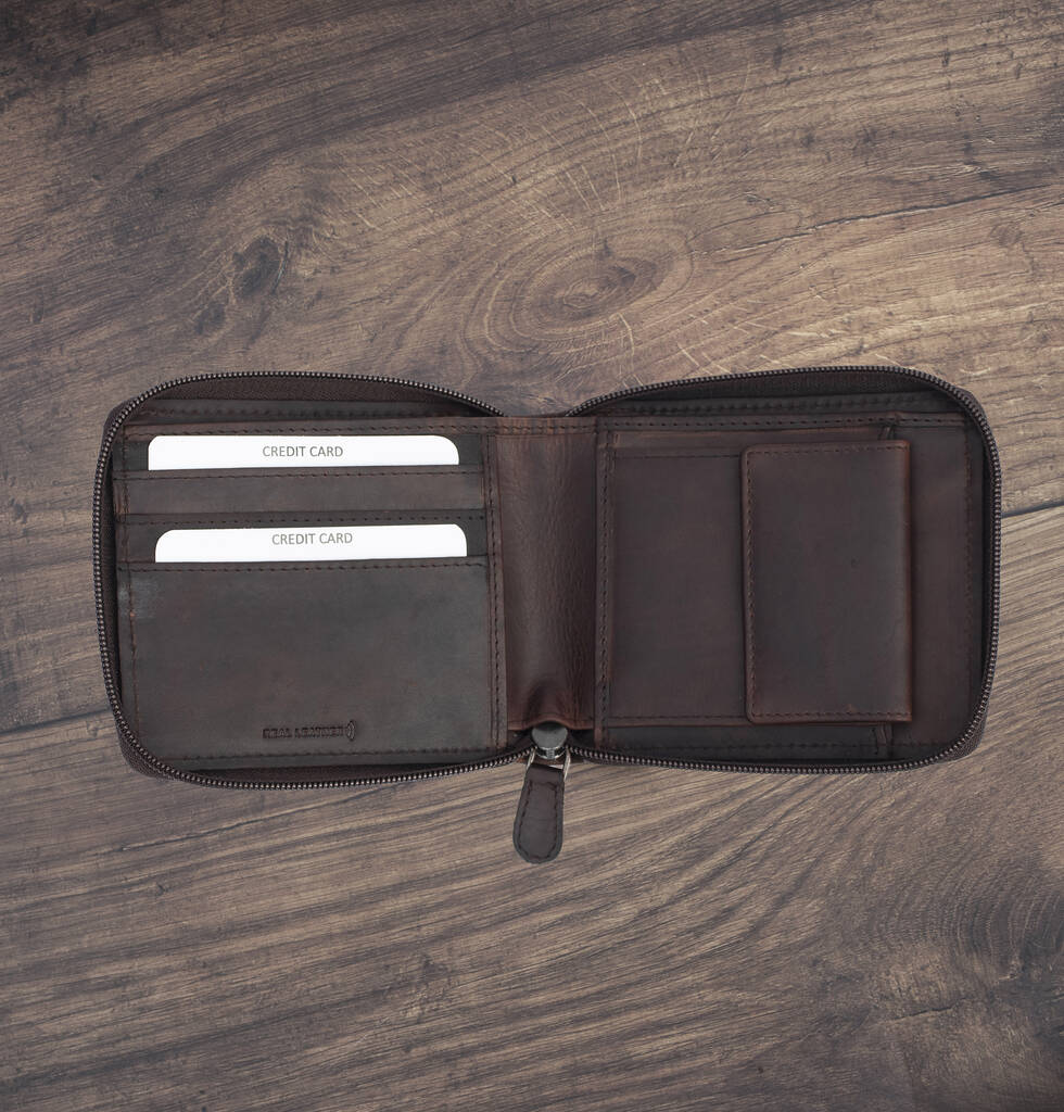 Keep your wallet safe with this leather zip around style with a fugged leather style.