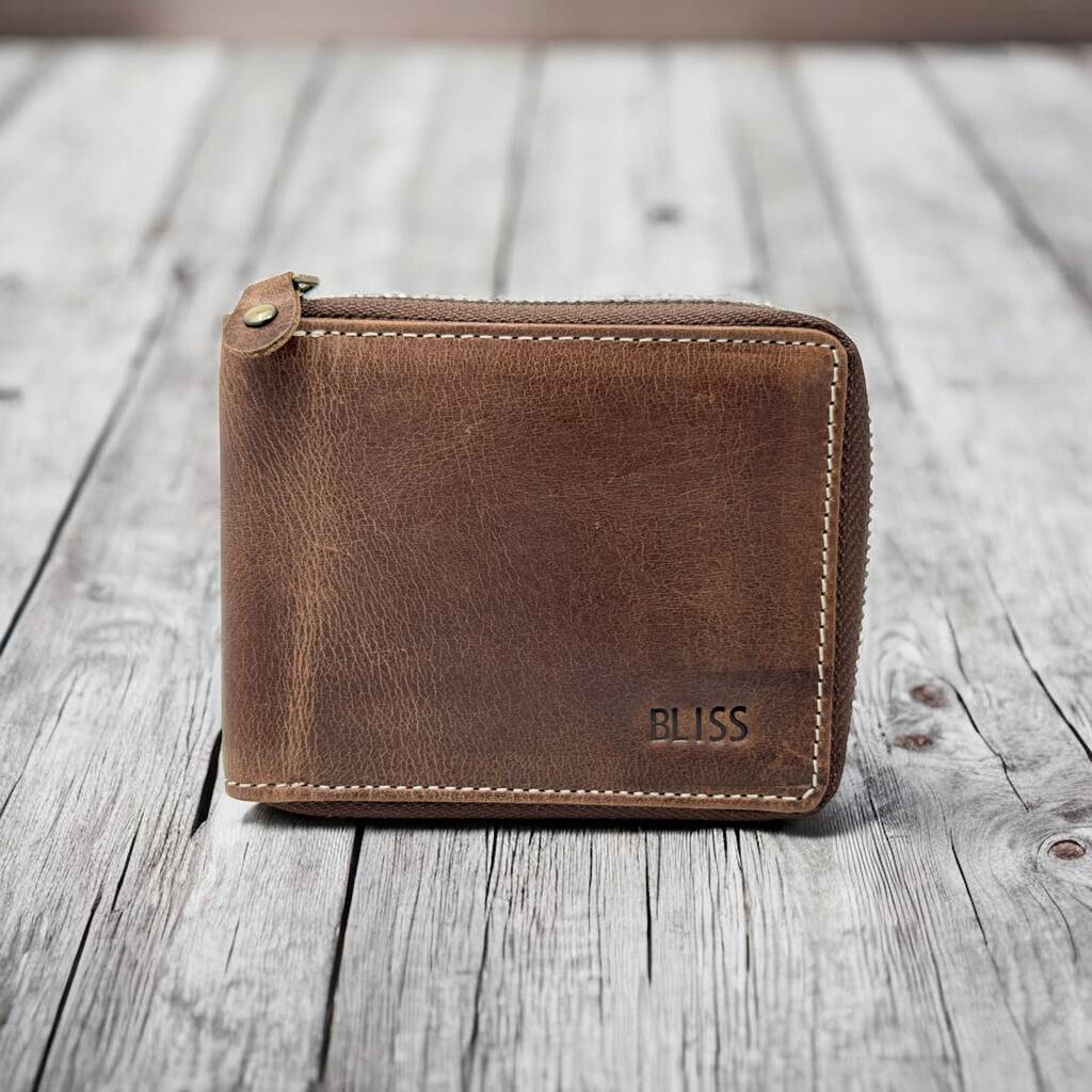 Personalised Round Zipper Leather Wallet For Christmas Gift