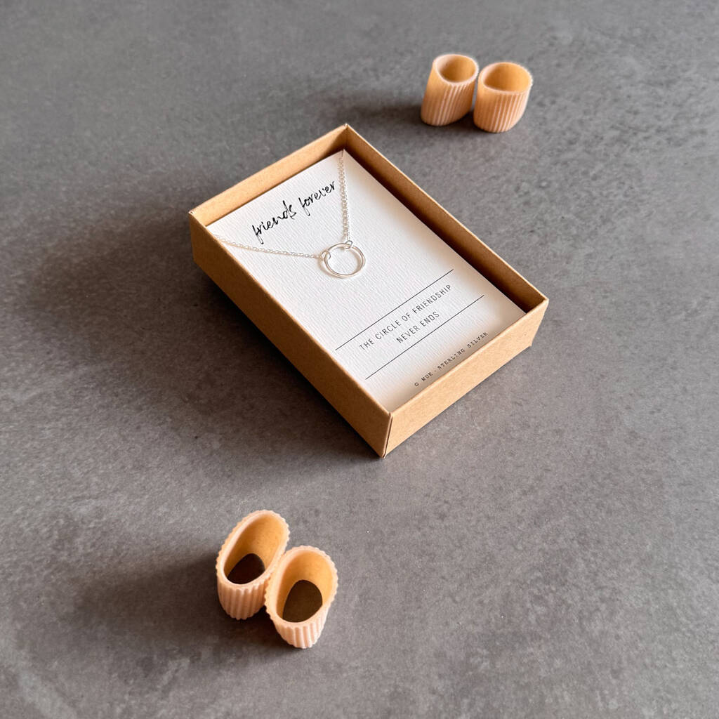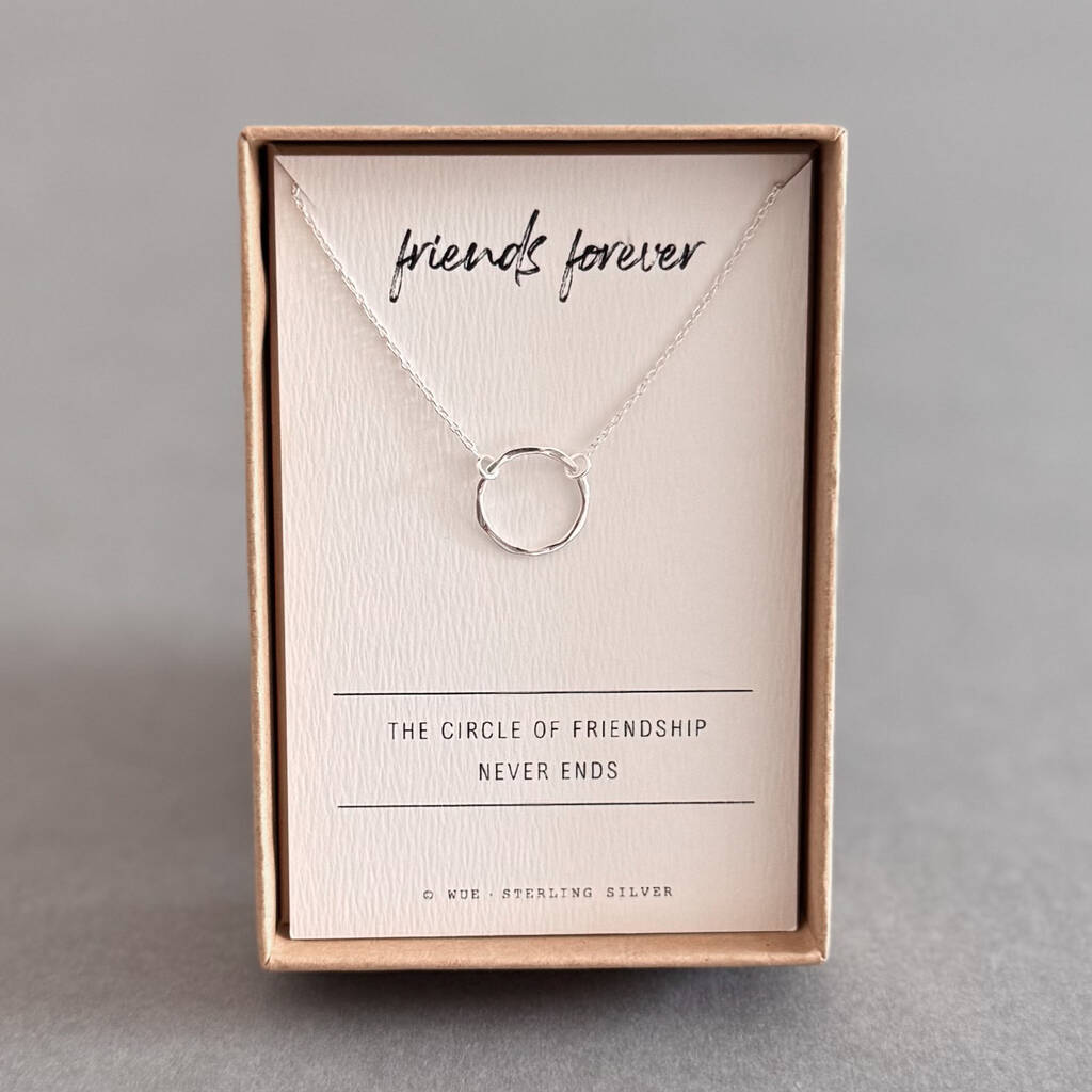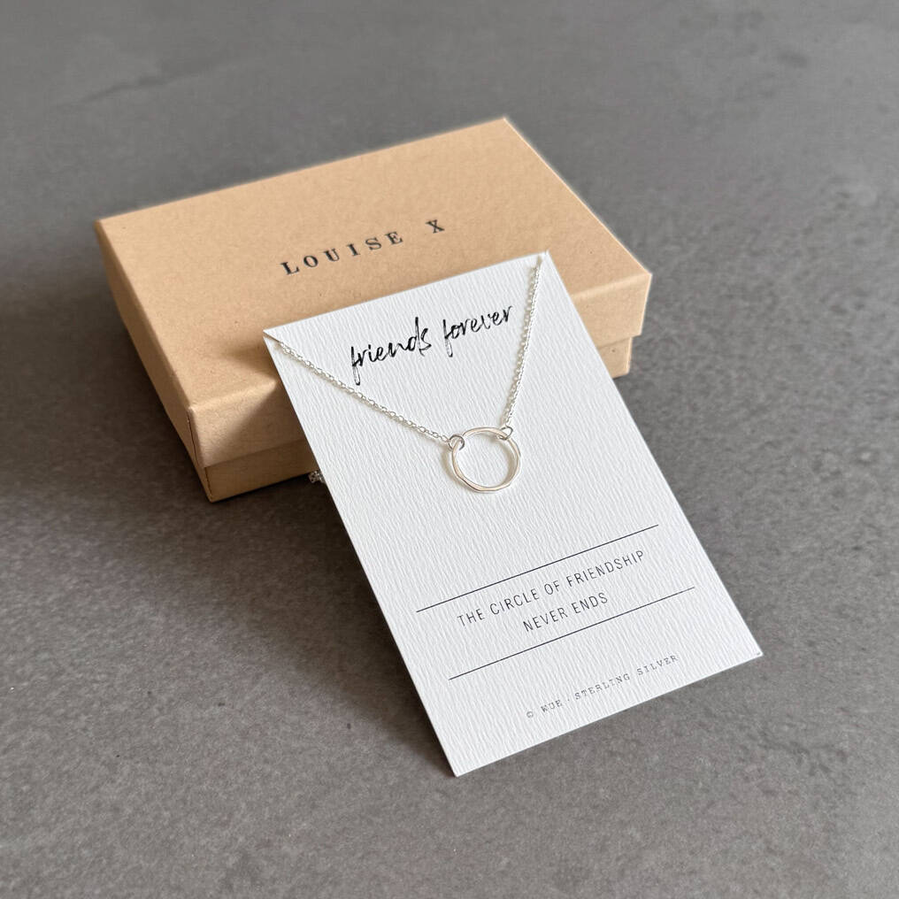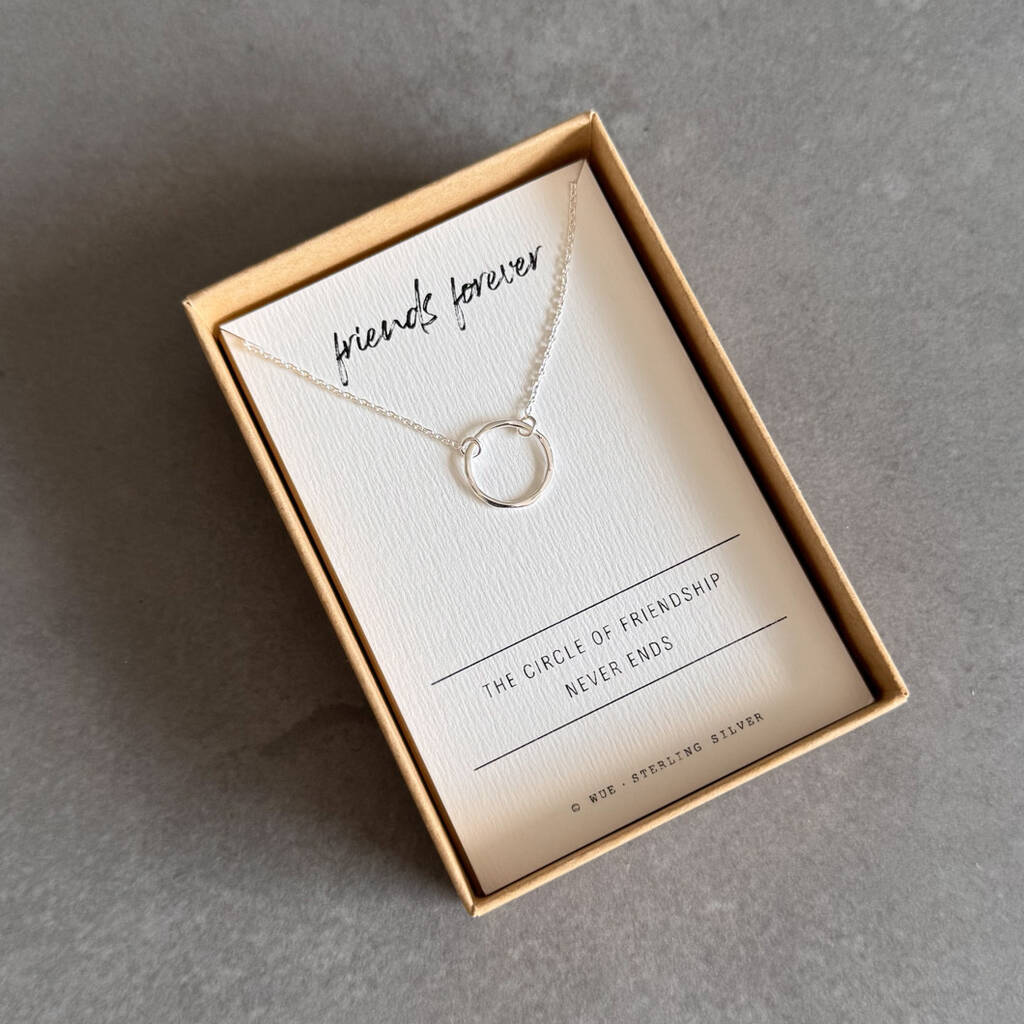 A sterling silver friendship circle necklace with an optional personalised gift box.