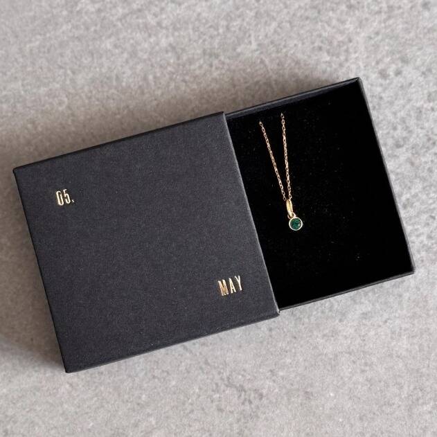 Known as the stone of vitality, the emerald is said to bring energy, intellect and a sense of renewal to the wearer. Crafted in 24k gold-plated sterling silver, our May birthstone necklace sparkles with a faceted emerald-green Swarovski crystal and can be personalised for an extra thoughtful touch. Meaningful, elegant and timeless - a piece of jewellery to be cherished and a stunning gift for a May birthday or special occasion.