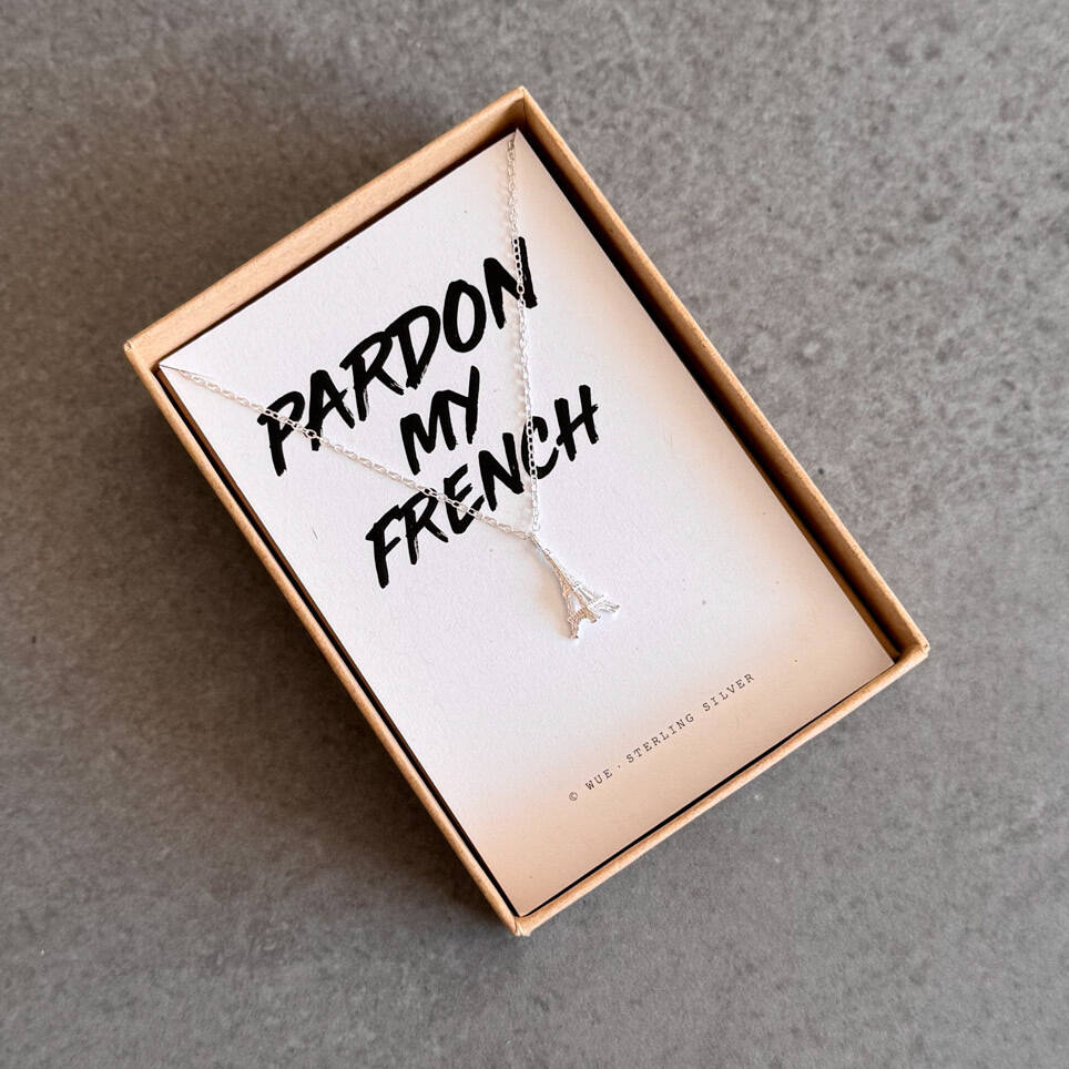 Pardon My French Sterling Silver Eiffel Tower Necklace – Playful Gift For Her