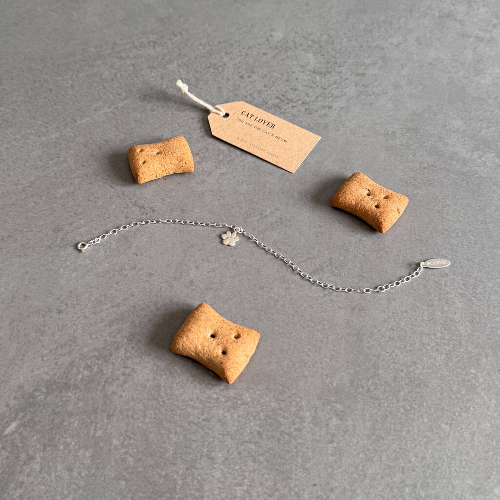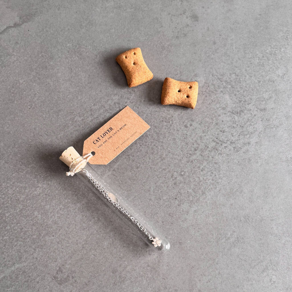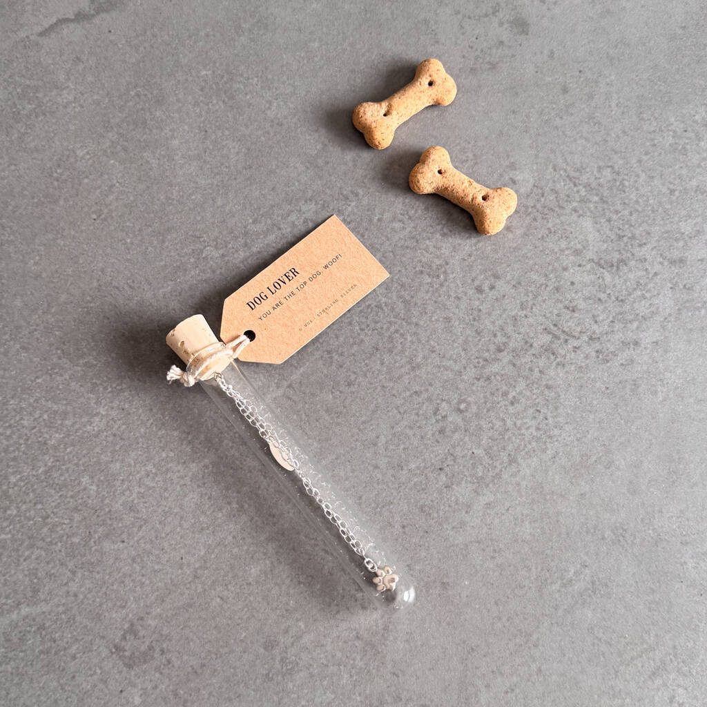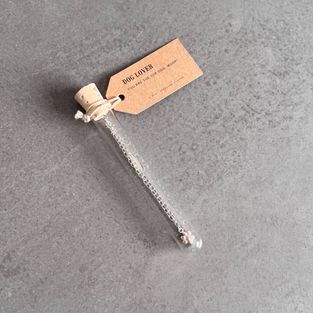 With a solid silver paw hanging from a delicate chain, this bracelet comes presented in a unique glass tube and your choice of message tags.