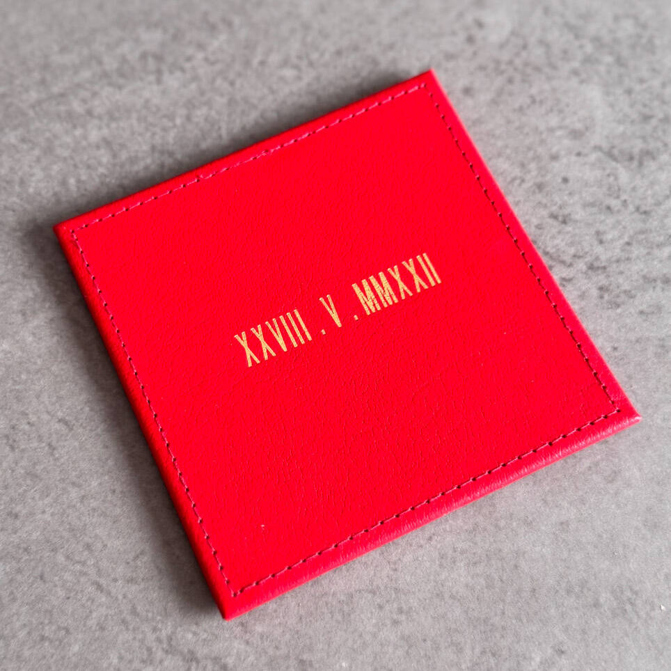 Personalised Roman Numerals Leather Coaster – Special Date Gift