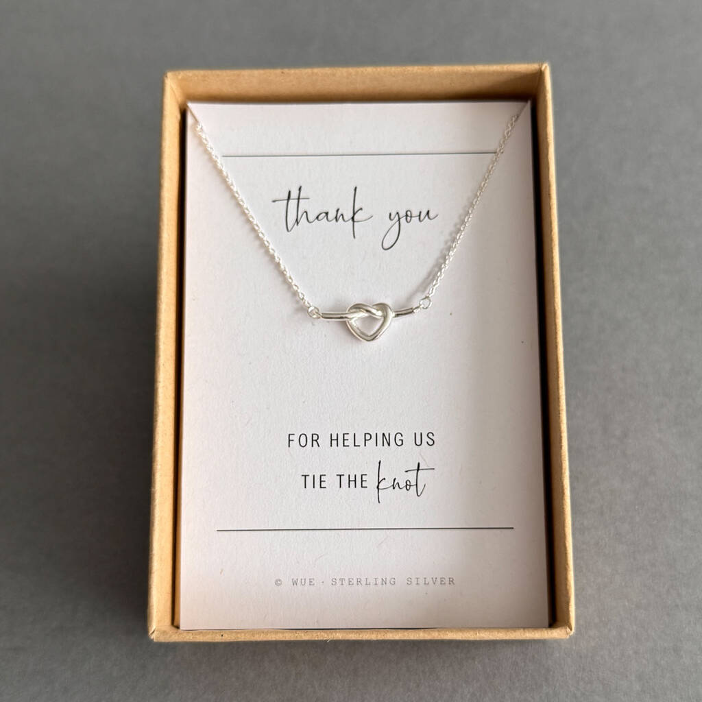 Thank You Heart Knot Necklace – Bridesmaid Or Wedding Party Gift
