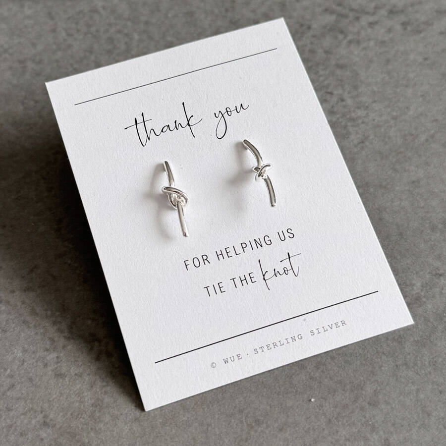 Thank You Bridesmaid Sterling Silver Bar Knot Earrings